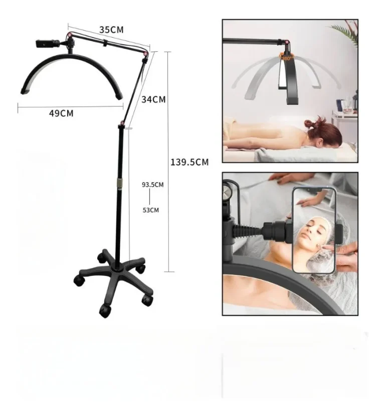 Half Moon Beauty Lamp with Remote Dimming – 70cm Wide Arc Design – Adjustable Height Floor Stand – 3 Colors Available Black White Pink – Professional Salon Facial Light